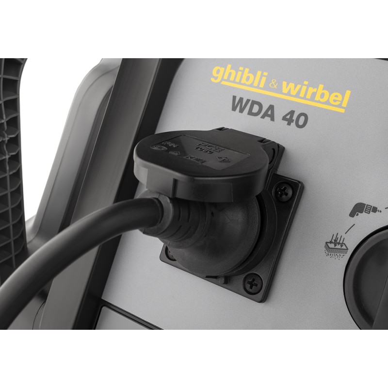 Aspirateur pour solides et liquides homologué pour les poussières classe L, grande capacité, puissant et robuste, conçu pour travailler dans des environnements caractérisés par la présence de poussières simples à risque modéré. Compact et maniable, TOOL PRO WDA 40 L est idéal pour être utilisé dans des environnements tels que les ateliers et les ateliers d’artisanat. Le système NONSTOPVAC!, grâce au nettoyage automatique du filtre principal par inversion du flux d’air, assure une aspiration constante et réduit sensiblement les temps d’arrêt de la machine, ce qui permet à l’opérateur de travailler sans interruption avec des performances d’aspiration élevées. Équipé d’une prise pour outils électriques (puissance max 2400 W) et d’un Kit COMBI pour le raccordement des accessoires pneumatiques (en option), il assure une pression de fonctionnement jusqu’à 10 bar. L’allumage de la machine peut être manuel ou automatique (commandé via l’outil connecté) et, de plus, il est possible de mettre en marche l’aspirateur directement par le tube flexible grâce au Remote Control Kit [télécommande] (en option).
