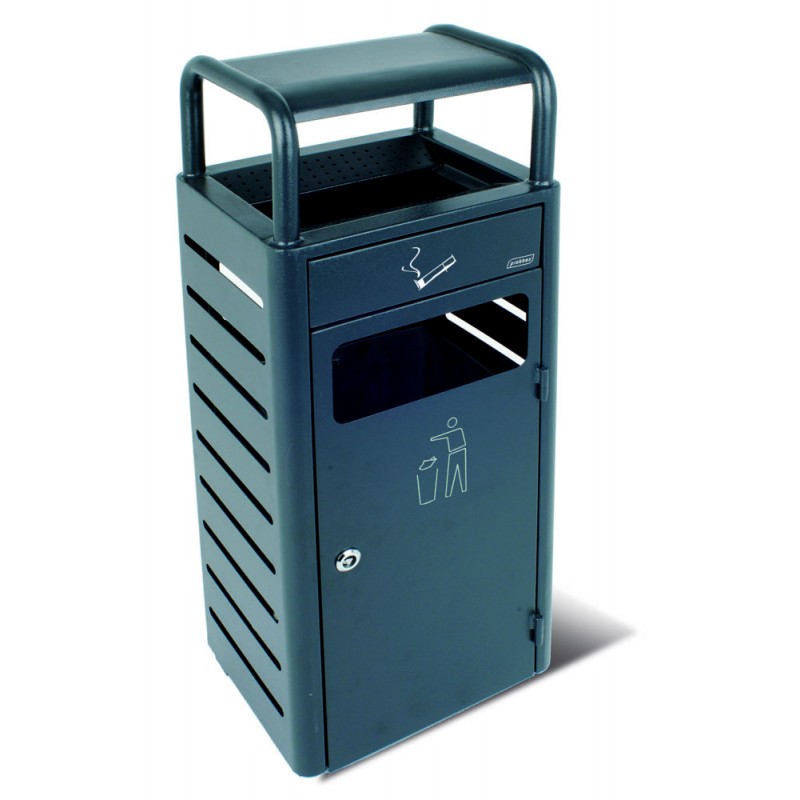 CENDRIER 2,3L avec un Conteneur d'une capacité de 20L, adapté pour un usage extérieur (acier galvanisé). Bac intérieur en zinc, kit de fixation au sol inclus.