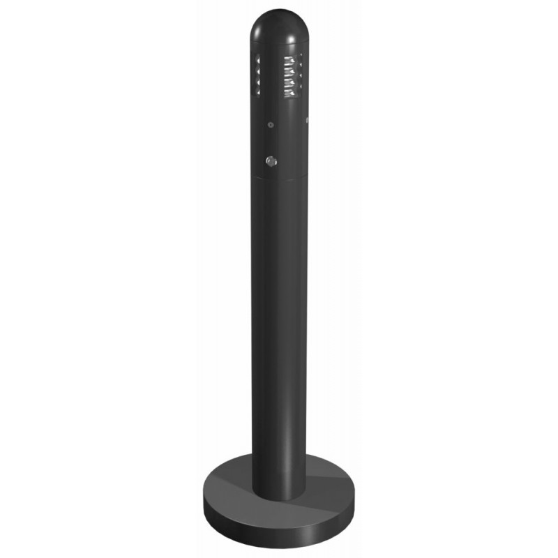 CENDRIER tubulaire 3L sur pied, extérieur en acier galvanisé et bac intérieur en zinc. Equipé d'un système de fermeture à clé et d'un kit de fixation au sol.