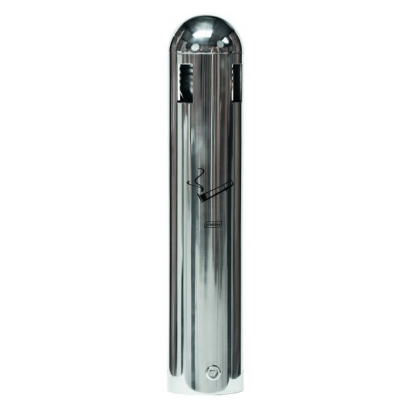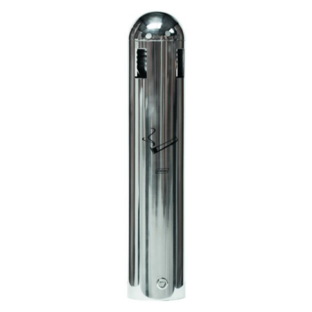 Cendrier Tubulaire mural 1,8L Inox 304. Conçu pour limiter l'infiltration de l'eau de pluie. Entonnoir intérieur pour étouffer rapidement la fumée. Construction robuste en Inox 304. Kit de fixation au mur inclus