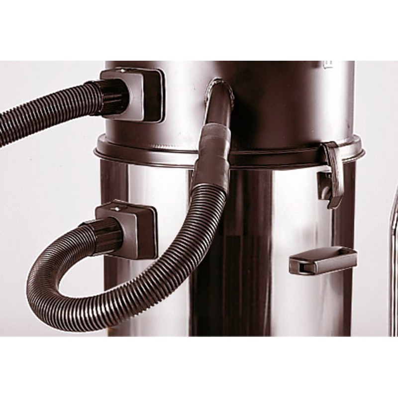 Aspirateur/liquide tracté, de grande capacité, doté de réservoir en acier inox et de kit antistatique. Deux moteurs commandables individuellement. La version CBM est dotée d'enveloppe avec capacité de basculement total du fût. Chariot robuste en métal. Sac en papier avec bouchon de fermeture, filtre supplémentaire nylon et entretoise porte-sac en option. Filtres à cartouche (normal et HEPA) en option.