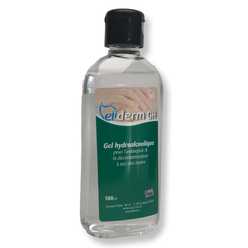 Eliderm GH est un gel hydroalcoolique destiné à l'antiseptsie et à la désinfection à sec des mains. Ce gel est incolore. Il est composé d'alcool éthylique (64-17-5) et de glycérine.