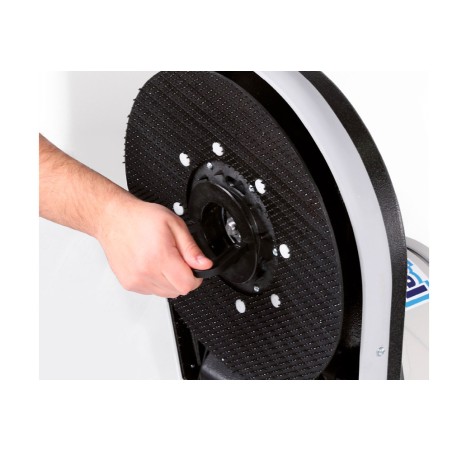 Cireuse à haut rendement, indiquée pour l'entretien journalier à sec de moyennes et grandes surfaces traitées avec des cires métallisées. Permet d'obtenir un degré de brillance optimale et (grâce aussi à l'accessoire spray electric system) un « effet mouillé » d'une façon incroyablement facile et rapide. Grâce à son système particulier de guidage, elle peut être utilisée aussi bien en ligne droite qu'en éventail, avec possibilité consécutive d'opérer dans des petits milieux et d'atteindre des points normalement inaccessibles pour des machines ultra highspeed communes. Puissance étudiée pour obtenir, avec totale adhérence du disque, des démarrages rapides et une utilisation prolongée. Équilibrage électronique du rotor à plein régime garantissant un fonctionnement sans vibrations. Moteur à induction très robuste pour longue durée et grandes performances. Double protection contre l'allumage involontaire. Interrupteur de sécurité avec arrêt automatique du moteur dès qu'on lâche le levier. Poignée : construite en plastique à haute résistance, elle permet d'actionner toutes les commandes de la machine sans déplacer les mains de la position de travail.