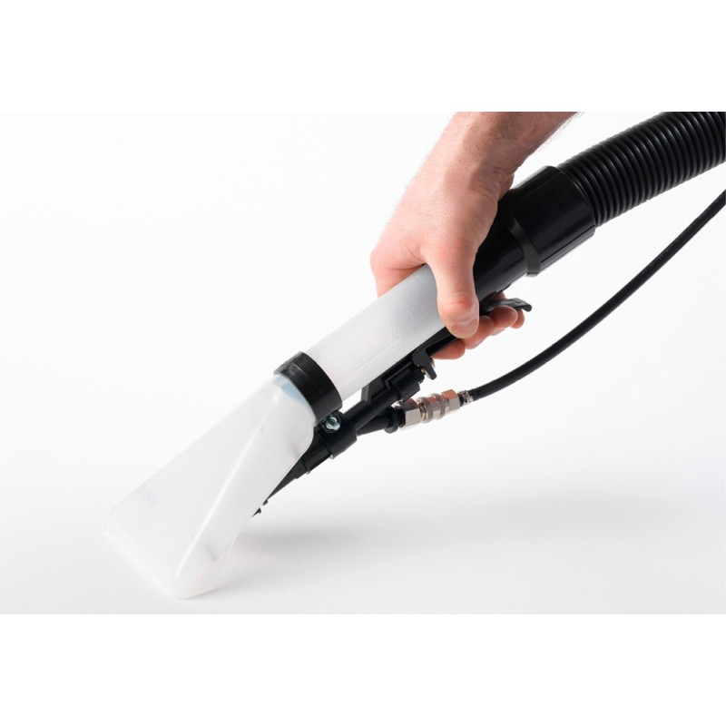 Modèle compact de nettoyeur à injection-extraction, idéal pour les environnements étroits, facile à transporter avec une bonne dotation d'accessoires. Pour nettoyer, laver et sécher tout type de tissu. La version est dotée de réservoir en acier inox. La version l Auto, outre le réservoir en acier a en dotation l’embout manuel et un tube de 6 m Ø 40 pour nettoyer facilement l'intérieur de la voiture, même dans les points les plus difficiles à atteindre. Tous modèles sont dotés de pompe avec puissance 28W, débit 0,95 I/min., pression 4 bar. Capacité réservoir détergent 7 litres. Réservoir détergent amovible. Commande indépendante d'actionnement pompe.