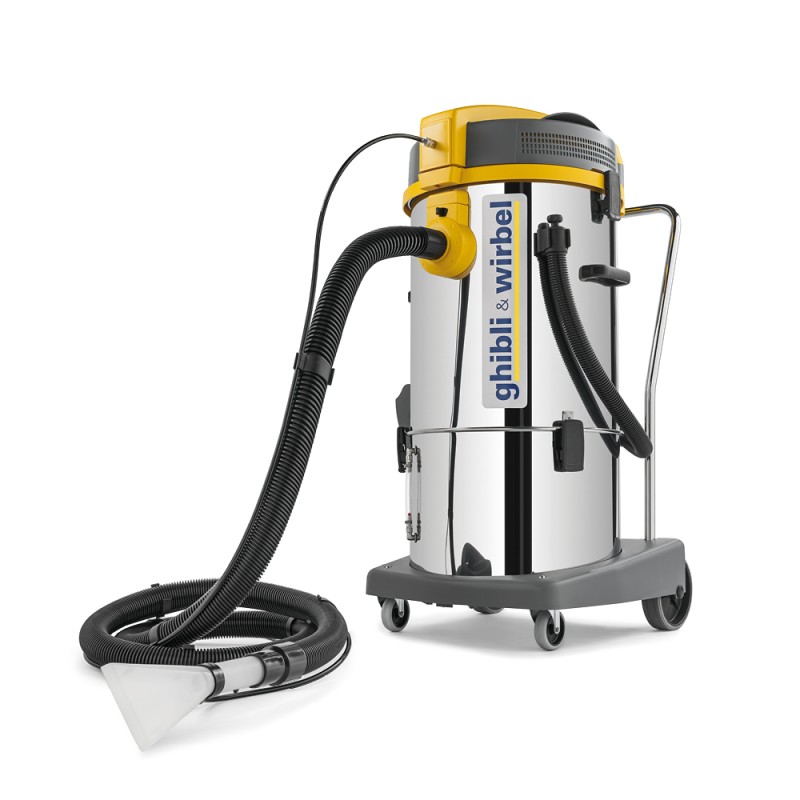 Le nettoyeur à injection-extraction Power Extra 31 est la machine top de la gamme, adapté pour tout type d'application. Polyvalence et performances très élevées (double moteur d'aspiration) déclinées dans les trois versions proposées, toutes avec des fûts en acier inox. La version standard a en dotation, outre le tube long de 3 m (Ø 40), l'embout manuel et l'embout pour sols ; ce modèle est disponible aussi bien avec la pompe traditionnelle ULKA (48 W de puissance, 1,1 l/min de débit, 7 bar de pression) que dans la version pompe CEME (60 W de puissance, 4,5 l/min de débit, 6 bar de pression). La version l Auto (elle aussi avec pompe CEME), outre le réservoir en acier a en dotation l’embout manuel et un tube de 6 m (Ø 40) pour nettoyer facilement l'intérieur de la voiture, même dans les points les plus difficiles à atteindre. Capacité réservoir détergent de 31 litres, facile à remplir grâce à la large bouche de remplissage située sur le côté de la machine. Réservoir de récupération (32 l) simple à vider, aussi bien en utilisant le tube de vidage qu'en ôtant tout le réservoir en quelques étapes simples. Commande indépendante d'actionnement pompe.