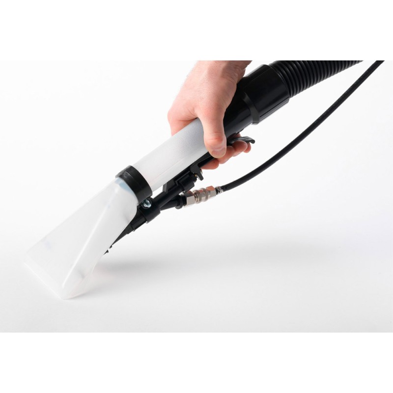 Le nettoyeur à injection-extraction Power Extra 31 est la machine top de la gamme, adapté pour tout type d'application. Polyvalence et performances très élevées (double moteur d'aspiration) déclinées dans les trois versions proposées, toutes avec des fûts en acier inox. La version standard a en dotation, outre le tube long de 3 m (Ø 40), l'embout manuel et l'embout pour sols ; ce modèle est disponible aussi bien avec la pompe traditionnelle ULKA (48 W de puissance, 1,1 l/min de débit, 7 bar de pression) que dans la version pompe CEME (60 W de puissance, 4,5 l/min de débit, 6 bar de pression). La version l Auto (elle aussi avec pompe CEME), outre le réservoir en acier a en dotation l’embout manuel et un tube de 6 m (Ø 40) pour nettoyer facilement l'intérieur de la voiture, même dans les points les plus difficiles à atteindre. Capacité réservoir détergent de 31 litres, facile à remplir grâce à la large bouche de remplissage située sur le côté de la machine. Réservoir de récupération (32 l) simple à vider, aussi bien en utilisant le tube de vidage qu'en ôtant tout le réservoir en quelques étapes simples. Commande indépendante d'actionnement pompe.