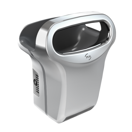 Sèche main EXP'AIR automatique à air pulsé avec son capot en aluminium. Equipé d'un bac de récupérateur d'eau ou d'une solution d'évacuation directe.