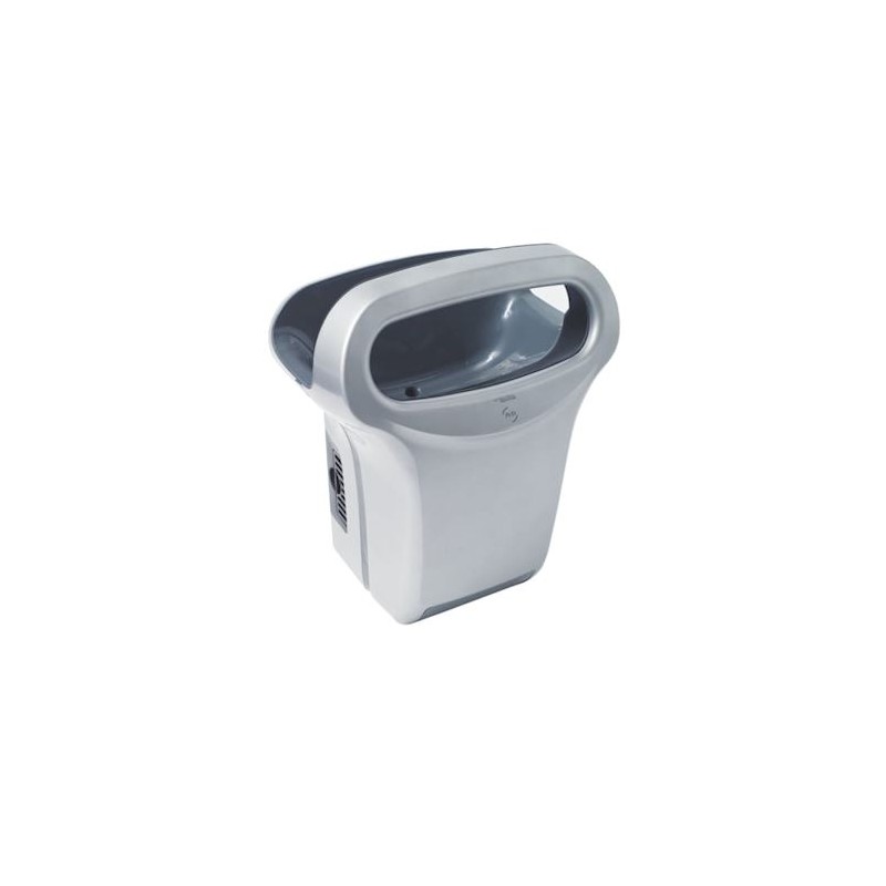 Sèche main EXP'AIR automatique à air pulsé avec son capot en aluminium gris métallisé. Equipé d'un bac de récupérateur d'eau ou d'une solution d'évacuation directe.